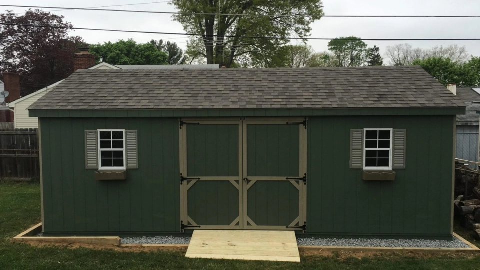 Our A-Frame small backyard sheds offer versatile storage space for lawn care equipment, tools, or sports equipment. This backyard shed building can also be used as a convenient one-car garage or a modest handymanโs garden shed workshop!